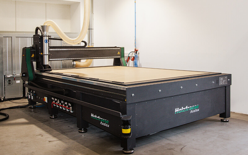 Specifically, this means: We are modernising our production facilities by adding a new CNC milling machine, a pressure beam saw and an extraction system. These new machines consume significantly lower amounts of energy and emit considerably less CO₂ while maintaining the same production volume, thanks to significantly reduced production and machine running times. This will help cut greenhouse gas emissions by at least 20% and boost energy efficiency by at least 10%.